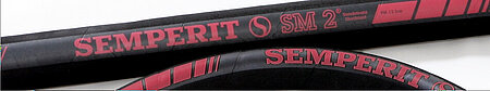 fortlaufendes Mylartape, rote Schrift: "SEMPERIT (S) SM2® Sandstrahl Shotblast WP 12 bar Made in EU ///////".