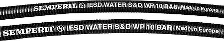 fortlaufendes Mylartape, weiße Schrift: "SEMPERIT (S) IESD EPDM WATER S&D WP 10 BAR Made in Europe".