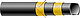 fortlaufendes Mylartape, gelbe Schrift: "SEMPERIT (S) TM2-TANKMEISTER® Mineralöl / Oil D WP 20 bar R<106 OHM MADE IN EU/////", sowie fortlaufendes Prägeband "Semperit (S) TM2 EN 1761:1999 EN 12115:2021 TRbF 131/2 NBR1 D NW PN 20 bar Ω/ T XQYY".